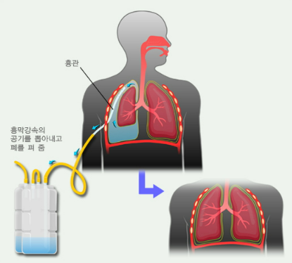 - 흉관삽입술만으로 폐가 펴지지 않음